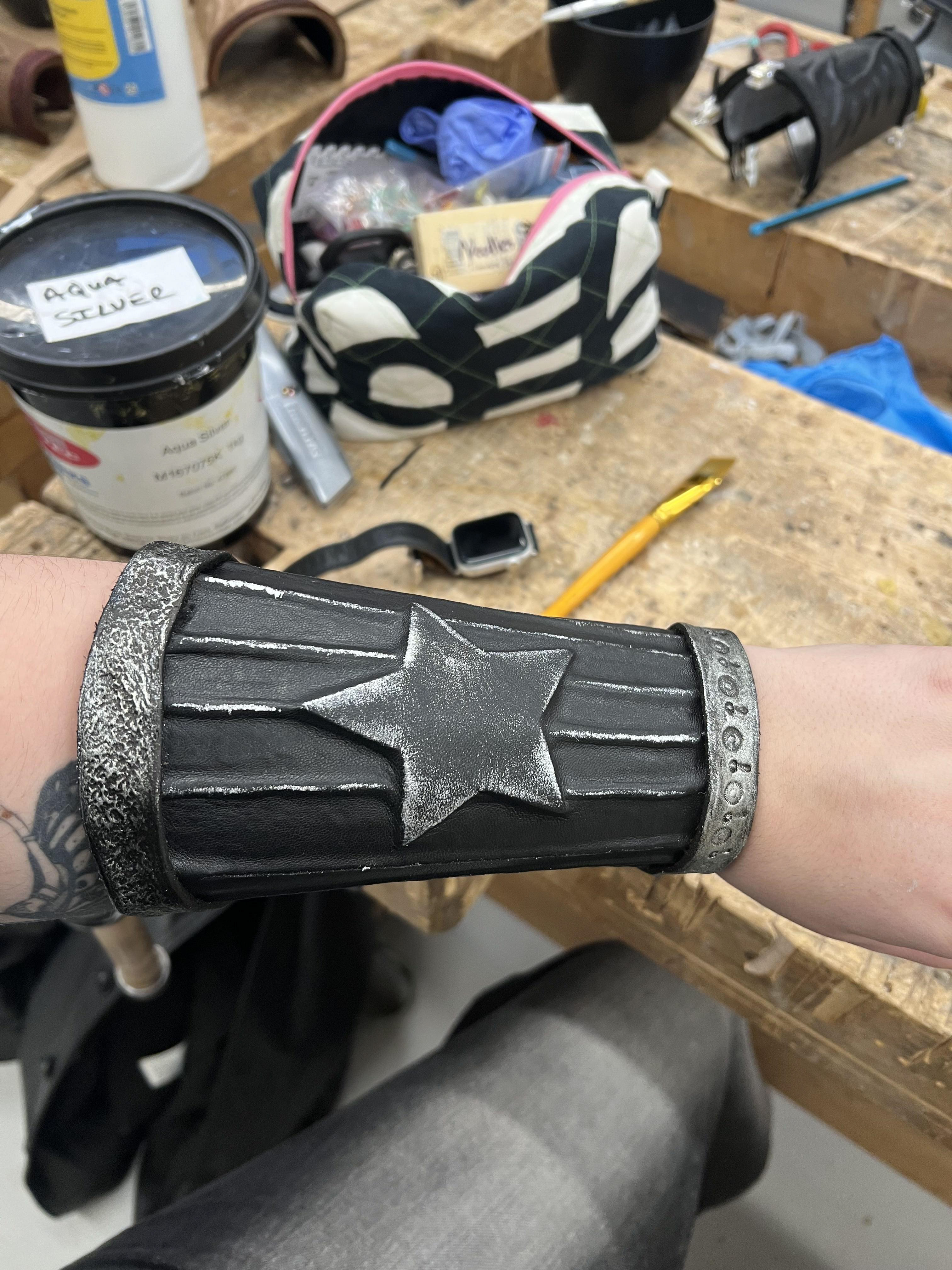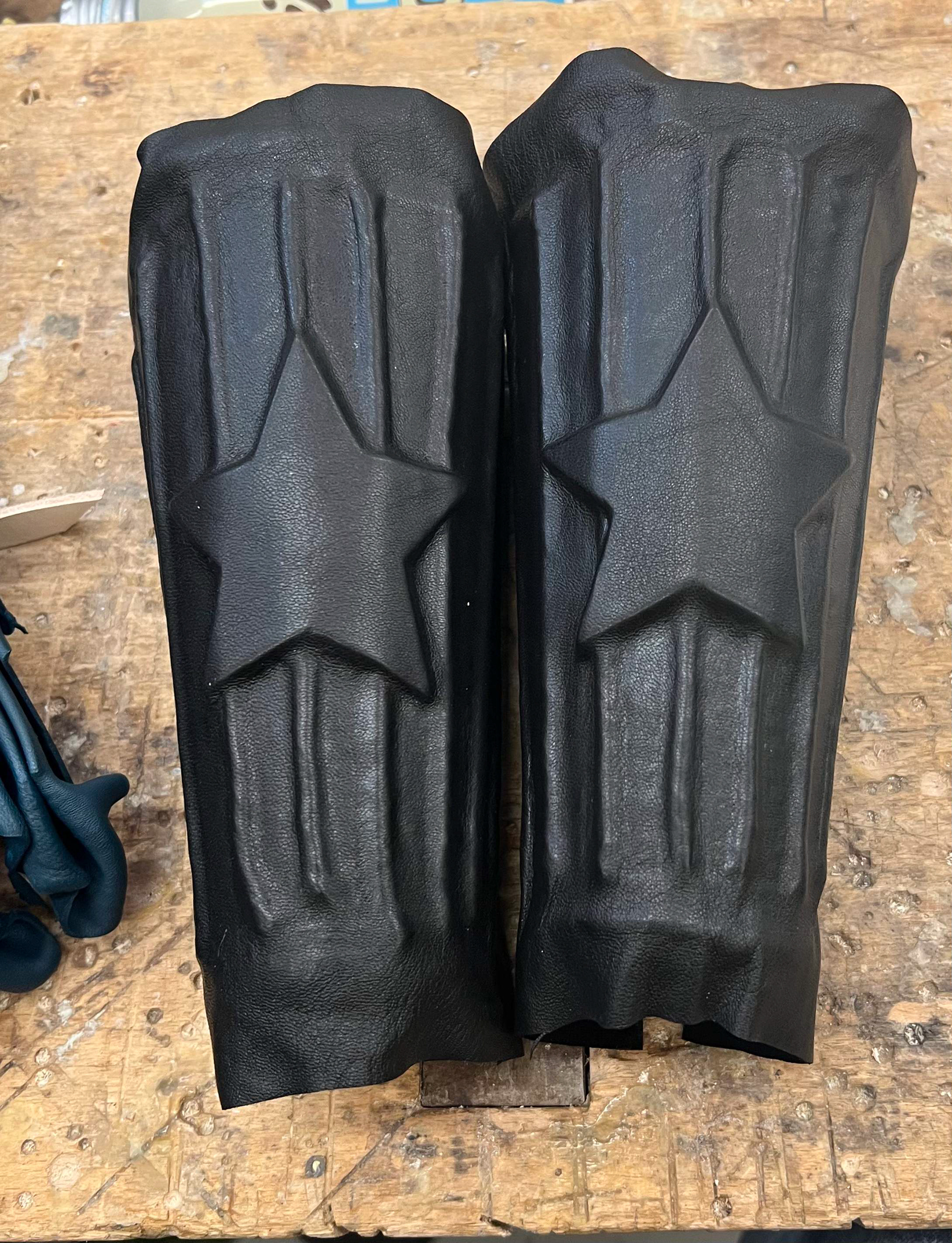 Leatherwork example. These pictures document the process of creating leather bracers on a buckram base.